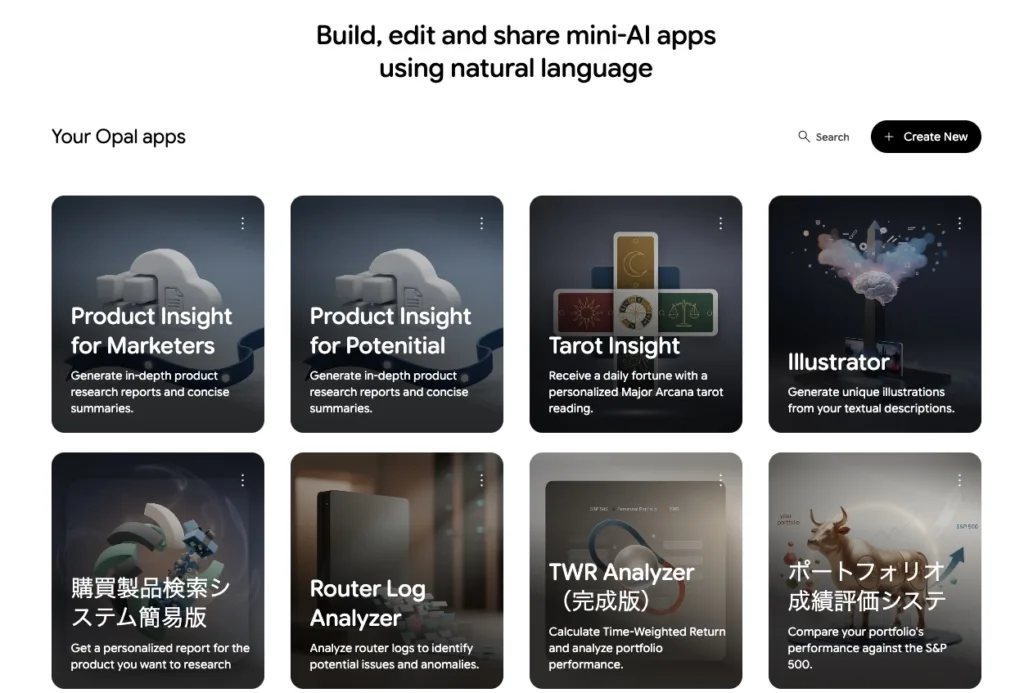 GoogleがOpalという新しいサービスを出した。プログラミング経験がない人も定型的なレポート出力などができるというサービスだ。基本的なリサーチの整理に時間がかかっているフリーランスのリサーチャーなどは基本的リサーチをラクに定型化できる。