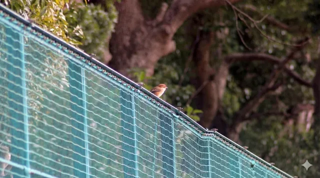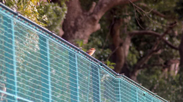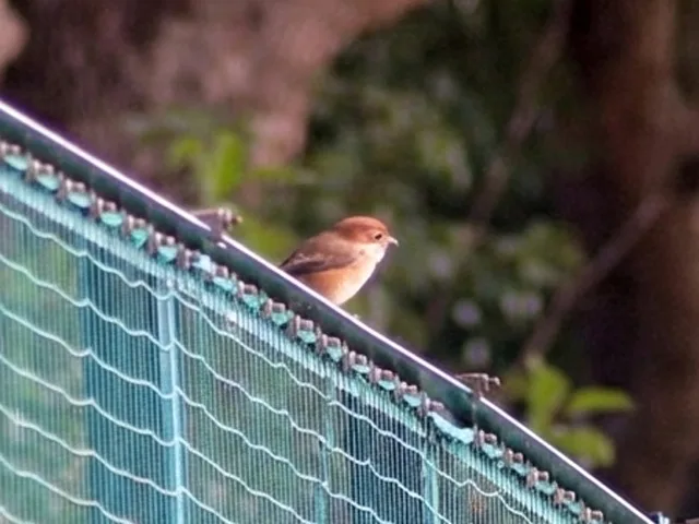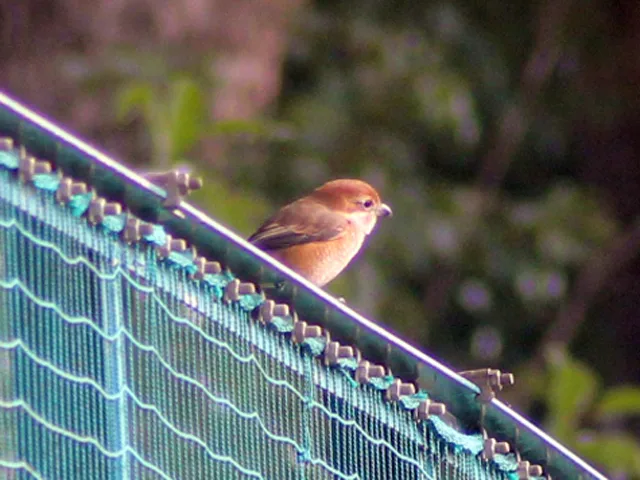 ジャンクの安い望遠レンズで撮影したためにフェンスに色収差がある。ちなみに鳥はモズだ。
