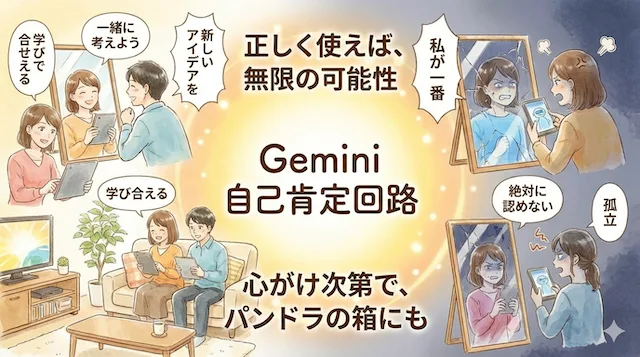 これまでエコーチェンバーと言うと「SNSのなか」で起きていたのだが、今後のエコーチェンバーは「自分との対話」の中で起きる可能性がある。しかし形式的には「AIが言っている」と権威化されてしまう。そして、Geminiとしてもそれを予想している。