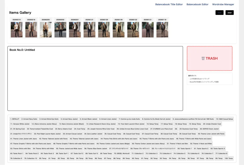 一晩プログラムを寝かせて、あることに気がついた。実は「カード」は部品であって、全体像ではないのではないか。そこでカードの上に「ワードローブ」という概念を置くことにした。これが正解だった。つまり、足りないのはカードの分類法ではなく、カードのコンテクスト(文脈)だったのである。Geminiに数行「ワードローブという概念を付け加えたい」と入力したところ、データベースとUIを作ってくれた。
