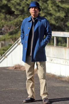 右の例では帽子の色がコートと一緒なので色彩的重心がさらに上に来ている。意図したAラインでなくても「着ぶくれ」対策になる。