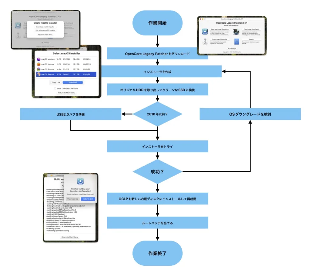 OpenCore Legacy Patcherを導入するまでのフローチャート